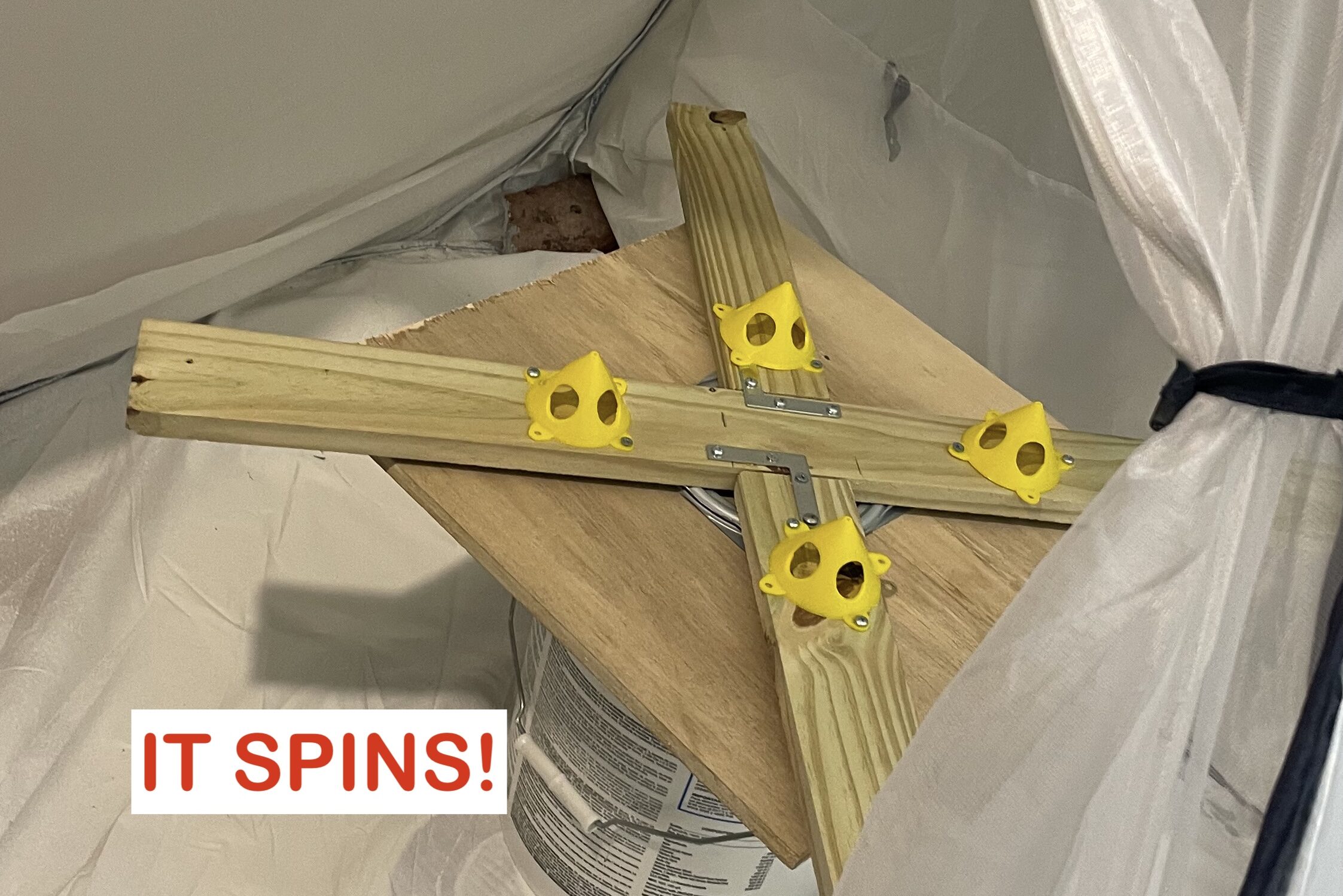 - Painter’s Pyramids: These project lifters prop up your doors so you can paint the edges and flip them without the wet side touching the ground. See my DIY painters wheel below which made painting in the tent WAY easier.